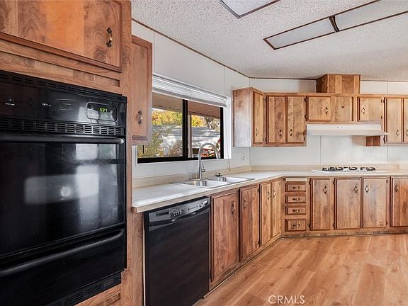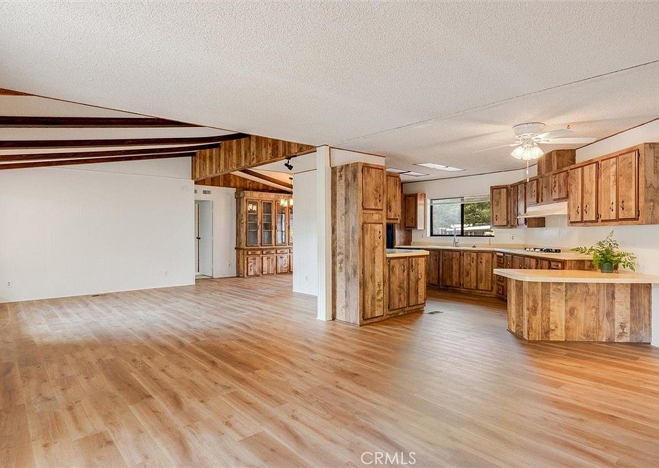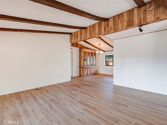 Located in Rancho Paso, a 55+ community park, this spacious 3-bedroom, 2-bath home offers approximately 1,756 square feet of thoughtfully designed living space with warm wood paneling throughout. Step inside to a bright, open-concept layout featuring a sun-filled living room with Vaulted ceiling and airy, inviting atmosphere. The home features newly installed laminate wood flooring in the main living areas and bathrooms, window blinds, sink fixtures, new HVAC, and newer cooktop, stove, refrigerator, sink disposal, washer and dryer.