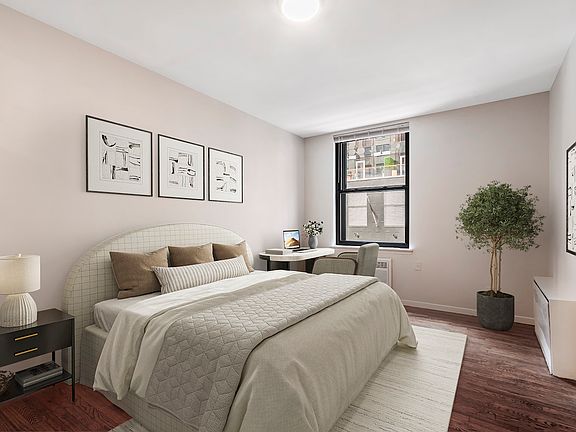 Spacious, approximately 650 sq foot 1-bedroom apartment located right on Bryant Park! This south-facing unit is flooded with natural light thanks to its large windows. With 3 closets, there's plenty of storage space. The kitchen has been fully renovated and includes a full size dishwasher, along with a center island breakfast bar that fits 3-4 stools. The bathroom has also been updated, featuring a stall shower with 4 jets for a spa-like experience.