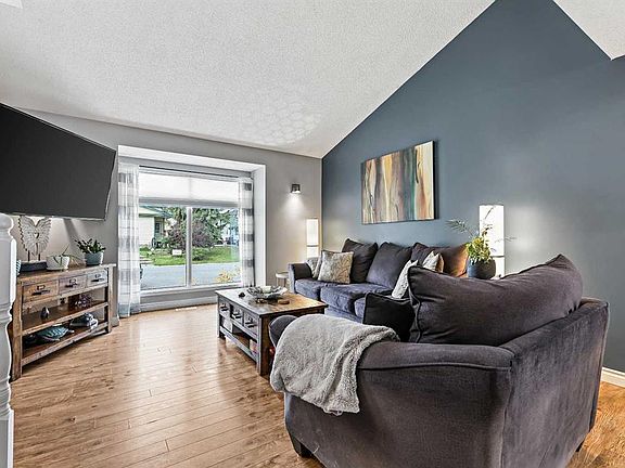 Welcome to this beautifully finished 2-storey home in the highly sought-after, mature community of Millrise! With over 2,300 sq. ft. of developed living space, including four bedrooms and 2.5 baths, this home offers so much more than meets the eye. From the curb, it feels cozy and quaint, but step inside and you’ll be greeted by a dramatic open-to-above foyer with nearly 17-foot ceilings and a 12-foot vaulted living room that immediately sets the tone. The front living room is bathed in natural light through its oversized window and flows seamlessly into the spacious formal dining area – perfect for hosting holiday dinners or family celebrations. The heart of the home is the upgraded kitchen, featuring granite countertops, a stylish glass tile backsplash, abundant cabinetry, and sleek stainless steel/black appliances. A bright breakfast nook overlooks the large backyard and flows into the sunken family room, where a timeless wood-burning fireplace with tile surround and wooden mantle creates the perfect gathering place for cozy evenings. A convenient main floor laundry room with side entry and a well-placed half bath complete this level. Upstairs, you’ll find three generously sized bedrooms, including a large primary suite with walk-in closet and pocket door access to the full four-piece bath with jetted soaker tub, full tile surround, and separate shower. The fully finished basement offers a private retreat for teens or guests with a fourth bedroom featuring a huge walk-in closet and its own full bathroom. There’s also plenty of open space for a media area, home gym, or games room – you decide! Step outside and enjoy the expansive backyard with huge deck, fire pit, and room to build your dream garage. The stucco exterior adds to the home’s charm while keeping maintenance low. Located on a quiet street in a mature neighborhood, you’ll love being just minutes away from Fish Creek Park, multiple schools, parks, Shawnessy shopping, restaurants, YMCA, and quick access to Stoney Trail and Macleod Trail. This is affordable homeownership in one of Calgary’s most family-friendly communities – offering space, function, and style all in one package.