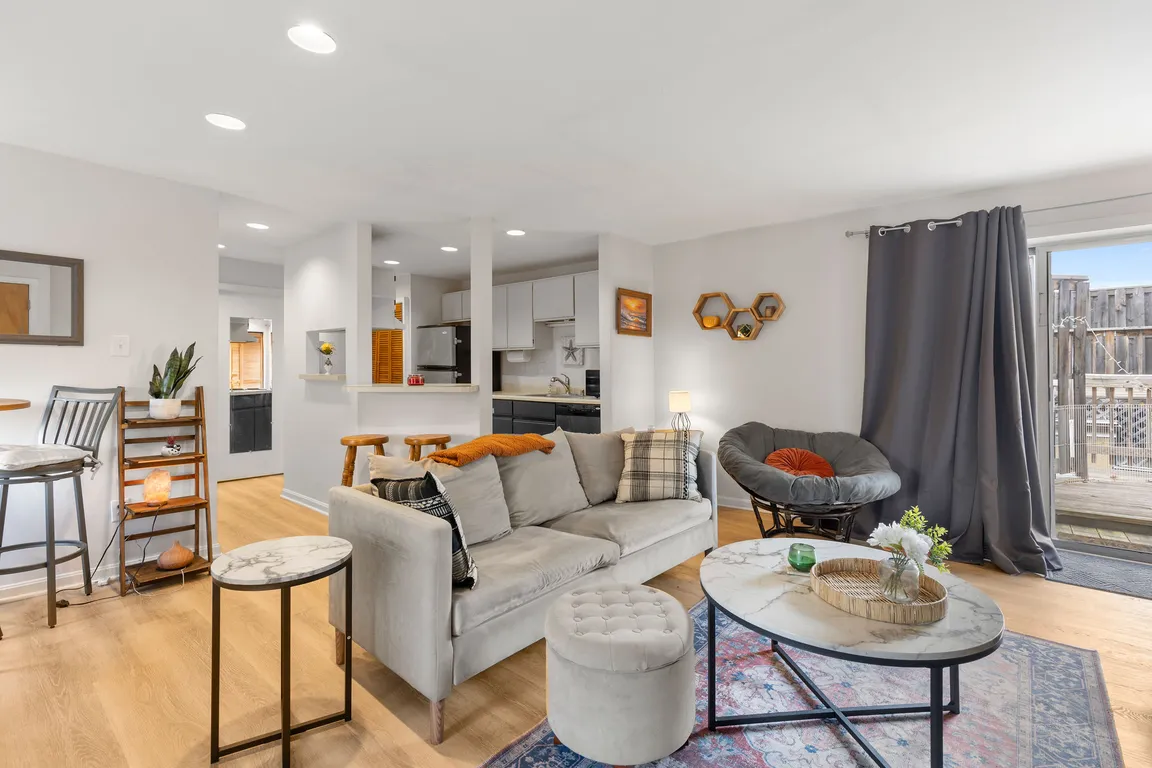 Modernized bathHistoric charmRefreshed flooringOpen layoutCozy living space