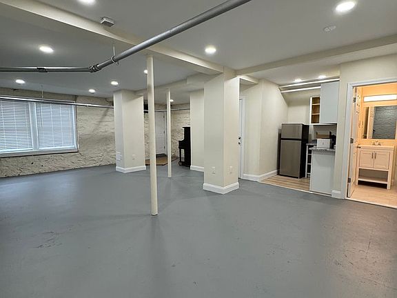 Open finished basement with two refrigerators, flat screen, bathroom; great for social get togethers