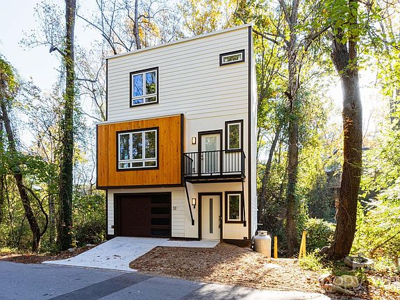 Brand-New Modern Build in West Asheville. Experience contemporary living in this new home, perfectly situated within close proximity of the River Arts District and minutes from downtown Asheville and Haywood Road. The main living area showcases an open-concept design with a stylish kitchen perfect for everyday living and entertaining. Enjoy seamless access from your kitchen to a private covered back porch, ideal for outdoor entertainment or relaxing above the creek. Upstairs, take your pick between two primary bedrooms, both of which include full on-suite bathrooms and closets. Other outdoor spaces include a quaint balcony with views to the River Arts District, and private stairs that lead to a serene creekside setting. Quality finishes are found throughout, and a durable 50-year roof provides lasting peace of mind. Driveway is completed! Home is 99% completed as of 10/09/25. (Tax valuation is based off of land only)