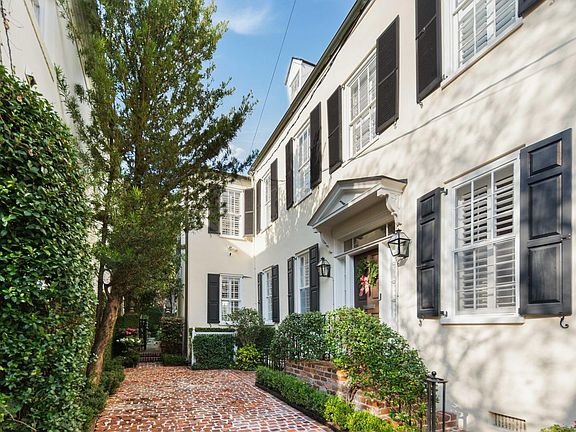 Circa 1843, the William Thompson House is located in the Ansonborough neighborhood of historic Charleston. This elegant residence blends preserved architectural character with thoughtful modern updates, creating a refined and inviting living experience.The property features off street parking for two vehicles and newly designed gardens that frame the pool with lush plantings, including lemon trees. A private terrace, enhanced by a charming garden gate, offers a tranquil setting for outdoor living. Recent improvements include a new irrigation system, a landscape lighting system, gas lanterns at the front entrance, recently replaced heating and cooling systems, a newer slate roof, and a fully cleaned and encapsulated crawl space.A Ring system is also in place. Inside, the home offers three functioning wood burning fireplaces and a series of beautifully scaled rooms. The wood paneled study, tucked quietly at the rear of the home, provides a peaceful retreat and includes a dedicated staircase that leads to an upstairs guest suite. The spacious primary suite includes a generous steam shower and a private porch that overlooks the pool and gardens. This outdoor space extends directly from the large dressing room and offers a comfortable setting for reading or relaxing throughout the day. The third floor includes two additional bright bedrooms that share a well appointed bathroom. This remarkable residence presents a rare opportunity to own a significant historic property with modern comforts in one of Charleston's most desirable residential locations.