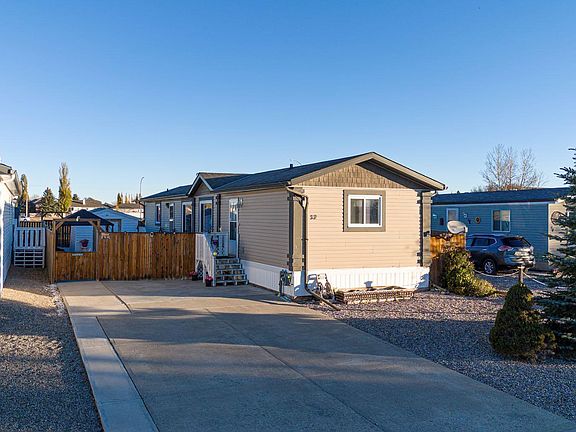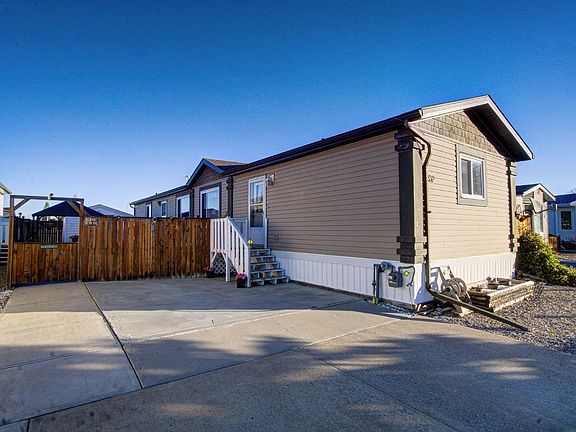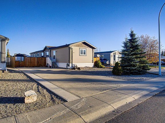 Welcome to easy, low-maintenance living in this well-cared-for modular home, perfectly situated on its own lot just blocks from the 18-hole golf course, the Kin Trail walking path, and Frog Creek’s scenic trails. Step inside to find an inviting open-concept layout with a spacious living room, bright kitchen, and dining area that make everyday living and entertaining effortless. The kitchen offers a central island, corner pantry, and plenty of cabinetry for storage. Just off the kitchen, the primary bedroom features a walk-in closet and a 4-piece ensuite. The convenient laundry room includes a second entrance and space for a freezer. At the opposite end of the home, you’ll find two additional bedrooms and a full 4-piece main bathroom — ideal for guests or a home office. Outside, the fully fenced yard is designed for easy upkeep with a ground-level concrete patio, handy storage shed, and back alley access. A paved front driveway adds to the convenience. Move-in ready and available for quick possession — don’t miss this fantastic opportunity for simple living close to all the outdoor amenities you love.
