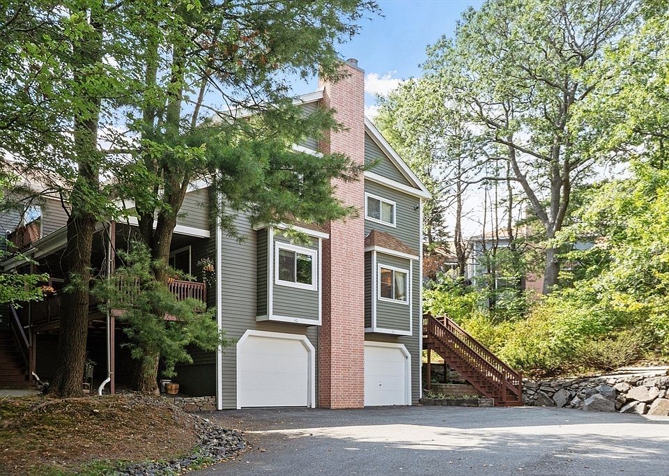 Space and convenience galore in a private wooded area of The Sanctuary Condominium. Open floor plan with angled fireplace allows warmth and visual enjoyment from both the living and dining rooms. Two large sliders lead from the kitchen and living room to an inviting deck, adding extended outdoor living. A skylight shines on an impressive stairway joining the three floors. Upstairs, two large bedrooms share outdoor access to a triangular deck. Each bedroom boasts ensuite full bath, ample closet space and vaulted ceilings. On the lower level, an extra-long garage may fit two autos in tandem. The garage enters directly into a bonus room, making it easy for unloading supplies and the in-unit laundry room is nicely tucked away. This spacious condo is minutes down the road to shops, groceries, restaurants, museums, walking paths, golf, boating and all the vibrant city of Salem has to offer. Bring your personal touches and decorative style and create the home of your dreams!