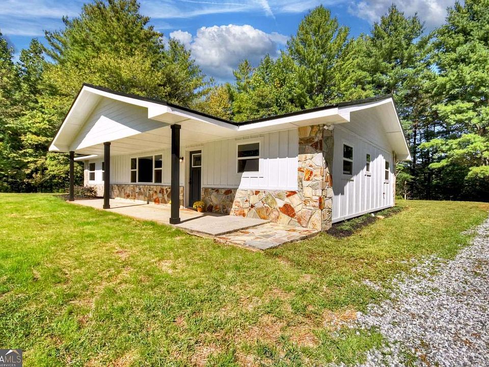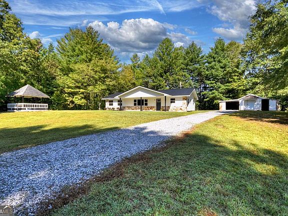 Tucked away in the quiet countryside of Blairsville, this newly remodeled 3 bedroom, 2 bath ranch offers the perfect blend of comfort and tranquility. Surrounded by open pastures and mountain views, this unrestricted property is a peaceful escape where wildlife and nature abound. Inside, the home has been beautifully updated with all new stainless steel appliances, custom kitchen cabinetry, granite countertops in the kitchen and baths, walk-in tiled showers, and a roomy pantry. The single-level floor plan is warm and welcoming, designed for easy everyday living and cozy gatherings with family and friends. Step outside and unwind in the spacious gazebo out front-an ideal spot to sip your morning coffee or watch the sun set over the hills. A one-car garage and storage building sit conveniently behind the home, offering plenty of space for hobbies, tools, or extra belongings. With its serene setting, fresh updates, and inviting spaces inside and out, this home is move-in ready and waiting for someone to enjoy a slower pace of life. Just minutes from Blairsville's town square, shopping, and dining, yet surrounded by peace and quiet, it's the best of both worlds.
