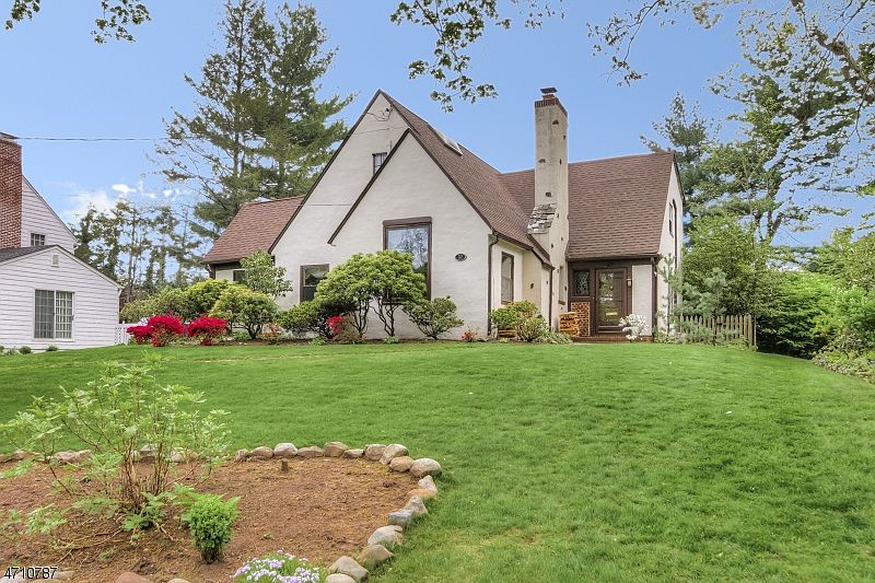 Enchanting 4BR/2.1BTH English Tudor w/ lovely updated eat-in kitchen open concept to DR. LR w/ vaulted ceiling & fireplace. Best Value in Knollwood/Hartshorn School district.0.5 miles to town & train. Perfect for entertaining, the custom renovated EIK features natural cherry cabinets, marble counters, stainless steel appliances, center island w/ bkfst bar & serving area w/ bar sink. A dramatic two-story LR with hewn beamed cg & plc, adj DR flow seamlessly into one another. Mudroom w/ 1st fl laundry, PR & two BRS on the 1st Fl w/ adjoining renov bath. Master suite has WIC, & skylights and master bath w/ jetted tub/shower & skylight. 3rd Level BR/Office w/ skylight. Move-in ready, this home combines authentic details with modern amenities perfect for today's lifestyle. Fireplace is being sold in AS IS condition.