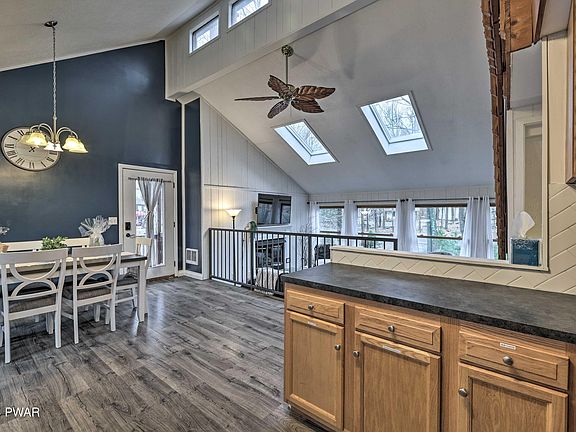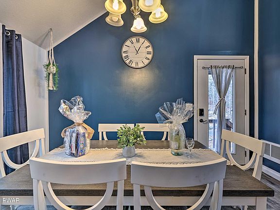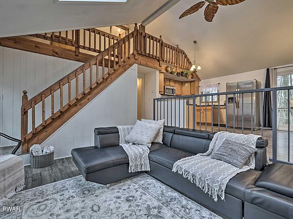 Located in The Hideout, a four-season amenity filled community in The Northern Poconos, just two hours from the NY, NJ and Philly areas. Discover the potential of this spacious home in a four-season, amenity-filled community in the Northern Poconos. With an open floor plan, vaulted ceilings, and a cozy woodsy atmosphere, this property is ready for your personal touch. The main level includes a living room with a fireplace, while the finished lower level offers extra living space with a family room, bathroom, and 4th and 5th bedrooms. A chimney in the lower level provides the option to add a stove or a second fireplace. Step outside to the large rear deck, perfect for enjoying the privacy of the wooded lot. With 5 bedrooms, 2 bathrooms, a level lot, and a circular driveway, this home offers both convenience and charm. Though some updates may be needed, it's a wonderful opportunity in a prime location close to community amenities.