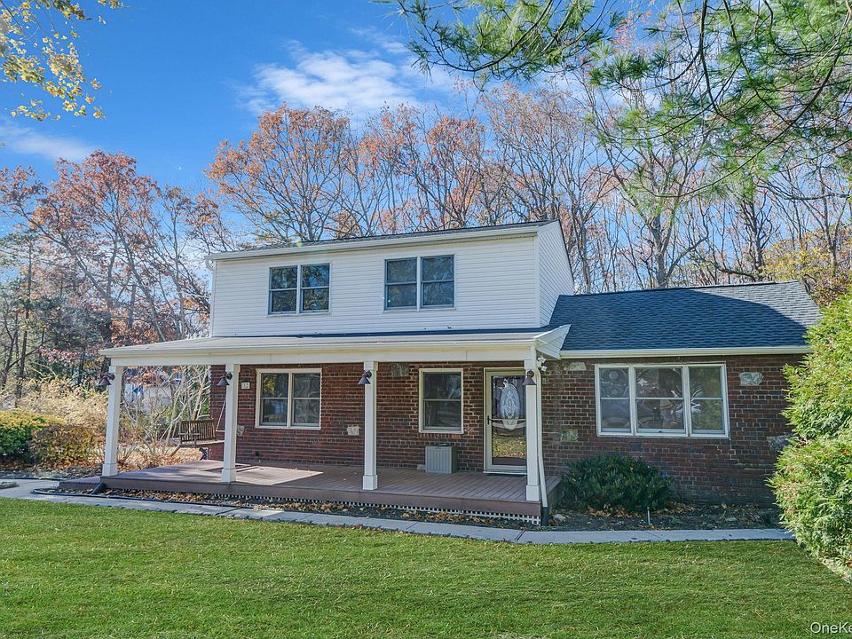 Welcome to this expanded 3-bedroom, 3-full-bath Cape offering 1,978 sq ft of living space on a flat .24-acre lot in the Sachem School District. This home features a brand-new 25-year roof with a transferable warranty, all-new gutters, soffits, and leaf guards. The primary bedroom includes a full walk-in closet and private bath. Enjoy a beautiful coffered ceiling in the den and hardwood floors throughout.