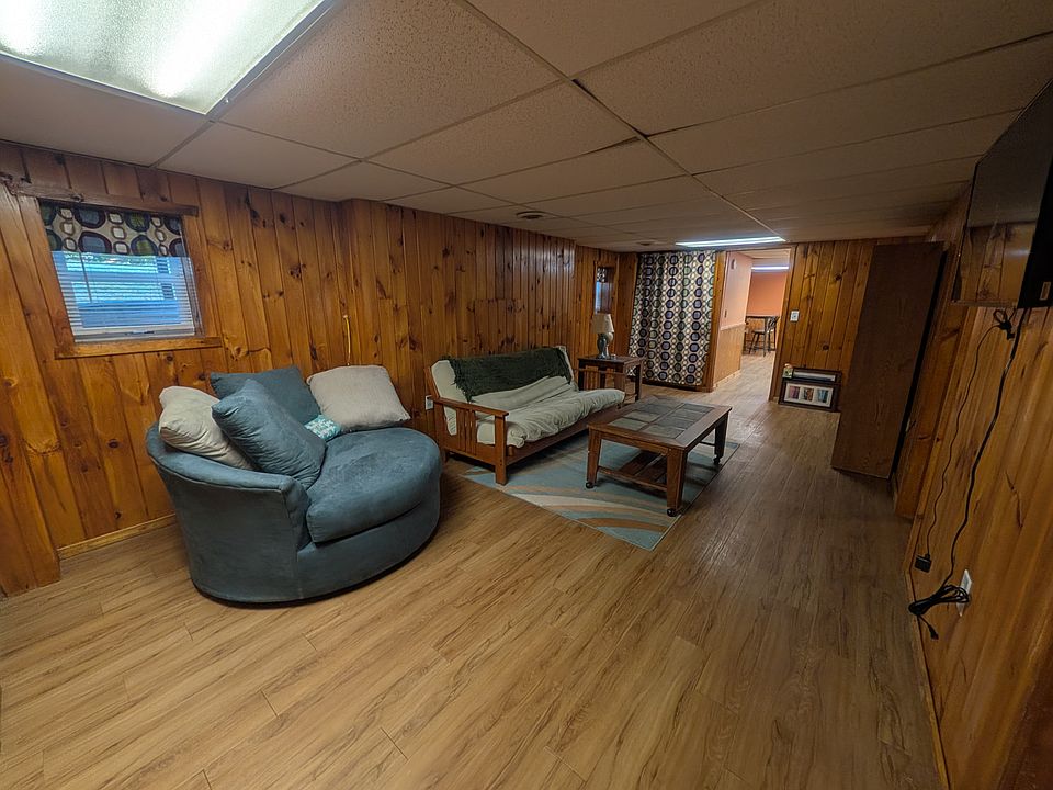 The apartment is located on the first level of a split-family house. It includes two bedrooms, full bath, kitchen/dining area and large living room. All rooms are fully furnished, the bedrooms have brand new mattresses and the bedframes are tall enough to store bins underneath. The kitchen includes a full size fridge, air fryer/toaster oven, microwave, coffee maker and all the typical essentials. There is a washer/dryer available, located in a room next to the apartment. (This is not shared, just in a separate location.)