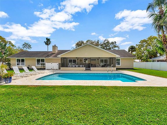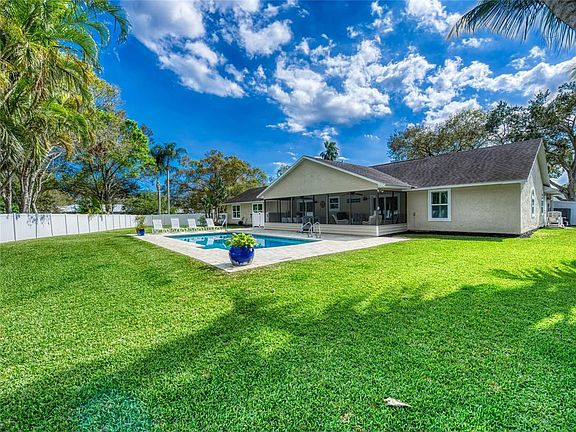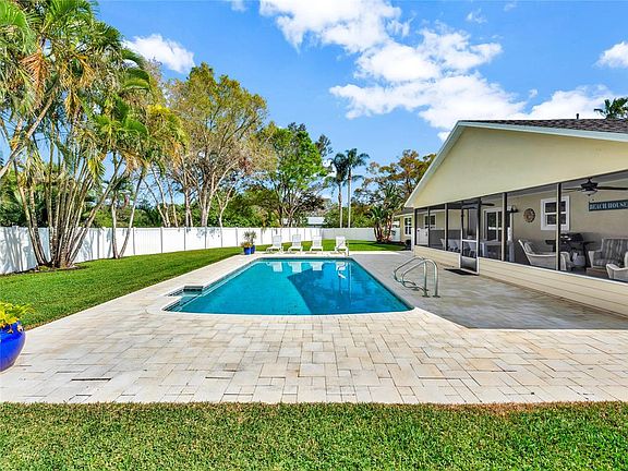 Nestled in the highly-sought-after Courtside community, this beautifully upgraded home features a high ceilings, and a chef’s kitchen with quartz countertops, stainless steel appliances. The huge fenced-in backyard oasis boasts a resurfaced sparkling pool and deck, a screened patio and lush green grass throughout the backyard and side yards offering plenty of room to play and relax. A wet bar just off the living room, perfect for entertaining. 4th bedroom is used as a mini master with bathroom attached. 2017 roof, 2022 AC, and ALL IMPACT windows and doors, this home is move-in ready!