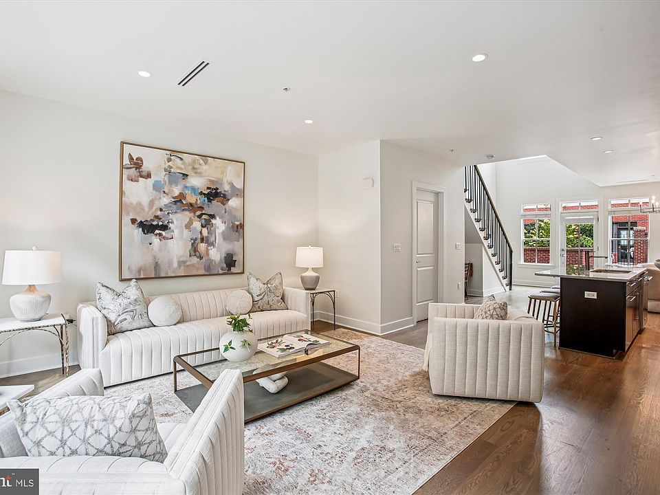 Tucked away in the highly sought-after and exclusive Printer’s Row community, this rare residence is one of only five fully gated homes, offering an unparalleled combination of privacy, security, and Old Town charm. The expansive main level welcomes you with a bright, open floor plan, soaring windows that flood the space with natural light, and seamless flow from the living and dining areas to a private rear patio—ideal for both everyday living and entertaining. The chef’s kitchen is a true centerpiece, featuring high-end appliances, ample cabinetry, and a thoughtful layout, while a convenient half bath completes the main level. The private owner’s suite spans the entire second level and feels like a true retreat, boasting a spa-inspired bath with a soaking tub, oversized glass shower, double vanity, and generous closet space. A rear balcony extends the suite outdoors, providing the perfect spot to enjoy a morning coffee or evening unwind. On the third level, two spacious guest bedrooms with brand new LVP flooring share a full bath, and the conveniently located laundry room adds ease to daily living. The upper-level loft offers versatility for a home office, media room, or gym and connects to a large terrace. From there, a dramatic spiral staircase leads to the crown jewel of the home—an expansive rooftop deck with river views, ideal for gatherings, sunsets, and city lights. To top it off, this residence includes two reserved underground parking spaces, offering rare convenience and security in Old Town. Ideally located in Old Town North, the home is just steps from the scenic Mount Vernon Trail and a short stroll to some of Alexandria’s best restaurants, cafes, and bars. With easy access to Washington National Airport, Metro, and downtown D.C., this home delivers the perfect blend of luxury, convenience, and Old Town lifestyle.