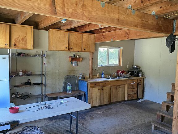 Custom built vacation home on 21 acres ready for you to put your finishing touches on! Conveniently located only 5 miles from Ruth Lake, 3 miles from Mad River PO and Burger Bar. Plus an easy drive to the Dinsmore Store. Listed as a 3 bedroom, but the upstairs is so large that there are several sleeping quarters for when you have lots of guests. Cell reception here is excellent. Insulated outbuilding with wood stove is 12' x 45', insulated 2 car garage is 28' x 24'. There is a drilled well with lots of water storage and 2 shallow seasonal wells. An outside bathroom with tiled shower has been started off of the back deck. Motivated Seller