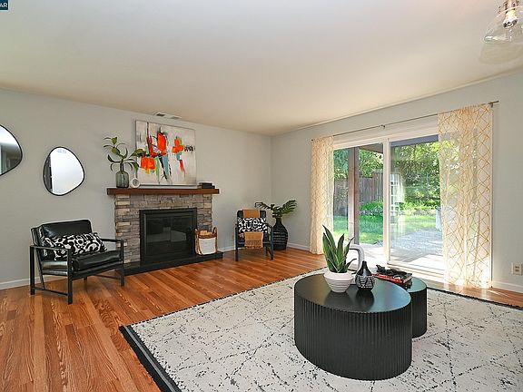 A beautiful modern haven tucked away in a serene community! This charming home welcomes you with fresh exterior and interior paint, updated front landscaping, and sleek fencing. Step inside to discover updated baths, and a remodeled kitchen that seamlessly connects to the inviting living room. The kitchen features a new refrigerator and oversized granite countertops, perfect for casual dining. Gather around the cozy fireplace in the living room, creating a welcoming atmosphere for relaxing and entertaining. Step out to the backyard retreat featuring an open air pergola and new Trex decking, great for BBQing or sitting outside to enjoy the warm summer nights. Adorned with charming flower beds, the backyard offers a picturesque setting for year round enjoyment. Nestled against a serene canal trail, providing privacy and peaceful views. Located in a desirable area bordering Martinez and Pleasant Hill, this home is zoned for top-rated schools. Enjoy convenient access to nearby shops, restaurants, and freeways. Trails and parks are just moments away, great for outdoor adventures. Come experience the epitome of contemporary living!