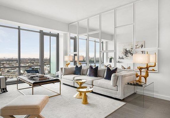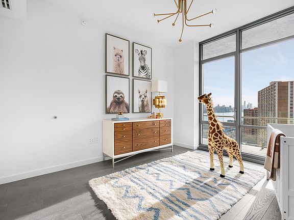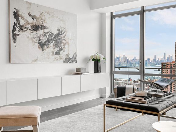 This luxurious 2-bedroom, 2-bathroom condo for rent at One Park Condos in North New Jersey offers a premium living experience in one of the area's most sought-after full-service buildings. Available both unfurnished and furnished, this spacious unit showcases stunning south-facing views of Midtown Manhattan from a large private balcony. The condo features floor-to-ceiling high-performance double-glazed windows that let in abundant natural light. With 7' white oak engineered hardwood flooring throughout, the unit exudes sophistication. The kitchen is a chef's dream, equipped with top-of-the-line Thermador Pro Series stainless steel appliances, including a fully integrated 30" - 48" refrigerator, a 30" - 36" gas range with a vented hood, a 24" integrated dishwasher, and a 24" microwave drawer. Polished Cielo Quartzite countertops and a matching backsplash complement the modern aesthetic, while custom white lacquer cabinets with brushed nickel hardware and under-cabinet lighting complete the space. The bathrooms are equally luxurious, featuring polished Blue de Savoie porcelain wall slabs, porcelain floor tiles, and custom walnut vanities with porcelain sinks. For those looking for the ultimate blend of luxury, style, and convenience, this is an ideal opportunity