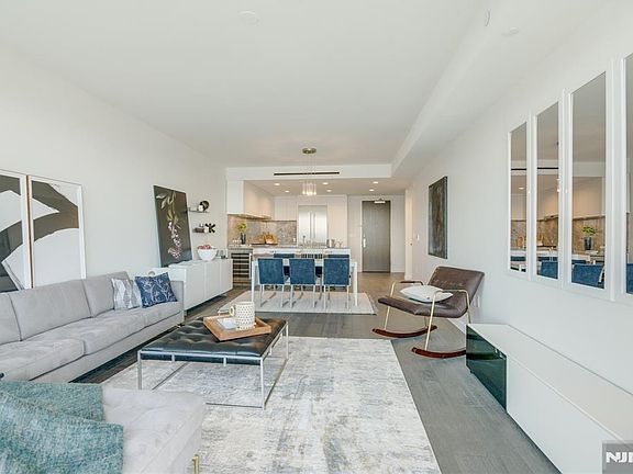 Experience the epitome of modern luxury with unobstructed Midtown Manhattan views from this stunning 3-bedroom, 2-bath residence at One Park Condos, one of North Jersey’s most coveted full-service buildings. A wraparound private balcony and floor-to-ceiling double-glazed windows showcase sweeping skyline vistas, filling the home with natural light. Inside, 7” white oak engineered hardwood floors complement an open layout, while the chef’s kitchen impresses with Thermador Pro Series appliances, Cielo Quartzite countertops and backsplash, and custom white lacquer cabinetry with brushed nickel hardware and under-cabinet lighting. The spa-inspired bathrooms feature polished Blue de Savoie porcelain walls, porcelain tile floors, and custom walnut vanities. Residents enjoy access to over 25,000 sq. ft. of resort-style amenities, blending sophistication, comfort, and convenience in one of the most desirable addresses along the Hudson River.
