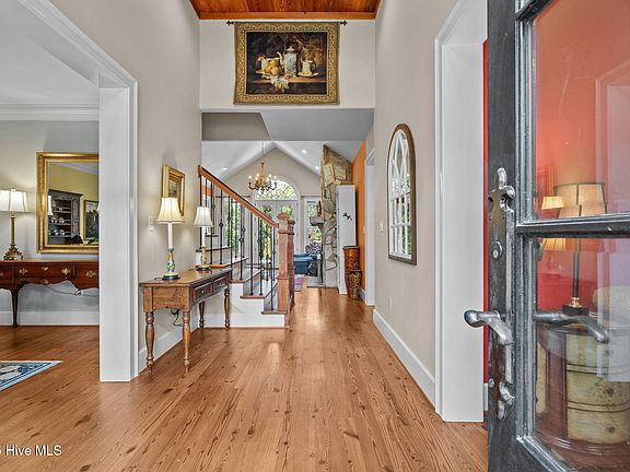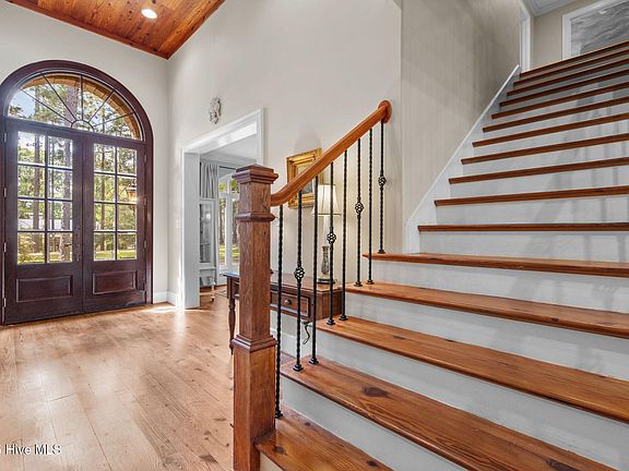 Exquisite details abound in a light-filled, peaceful home nestled within Weymouth Heights. This lovely home has 4808 square feet of elegant living space, including 5 bedrooms/3full/2half-baths on .9 acres flanked on one side by a land trust. Primary bedroom suite is located on main floor. Details include: beautiful, wide-planked, heart pine flooring in stately foyer and throughout first floor,, cathedral ceilings in family and living rooms, 2 gas fireplaces, substantial crown molding, brick floors in kitchen and breakfast room, full walk-out, finished lower level with bedroom, kitchen, bath and a half, as well as a living area, craft room, golf cart garage and loads of storage. Upstairs are 3 light-filled bedrooms, a coffee bar and 1 full bath. Outside, all main living areas open onto two back porches that wrap around both levels and look out onto mature plantings in a curated and terraced garden. Weymouth Woods is a mere 5 minute walk down a bridle path. This home is truly the complete package. Don't miss an opportunity to own in the desirable Weymouth Heights neighborhood.