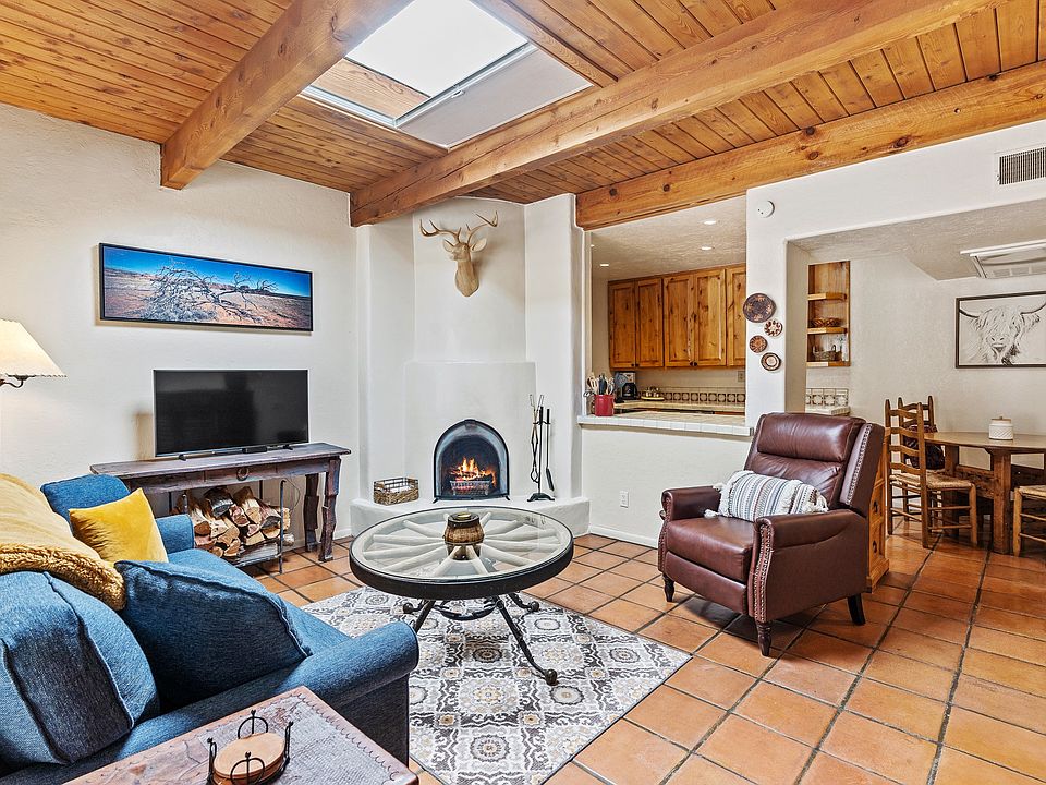 The location is a major draw: just minutes from the vibrant Santa Fe Plaza yet tucked away from the hustle and bustle. Outdoor enthusiasts will love the quick access to Ski Santa Fe, Ten Thousand Waves, and countless hiking and biking trails. A new roof (2024) adds peace of mind and lasting value. Whether you’re looking for a personal retreat, a reliable income property, or both, this home presents a rare opportunity to enjoy Santa Fe living while maximizing flexibility and return. HOA fees cover WiFi, cableTV, CAM, insurance, roof, stucco, snow removal and more! Other features include a wood-burning kiva fireplace, refrigerated air-conditioning, washer/dryer in unit, skylights, and satillo tile flooring throughout.