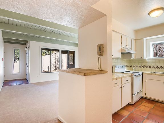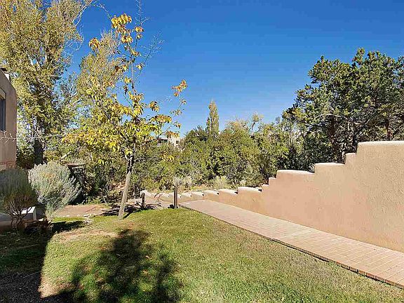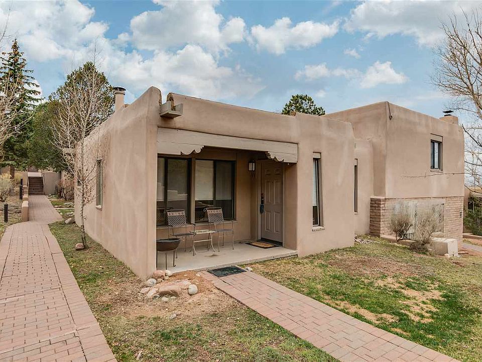 This privately located one bedroom, one bath end unit in Ft. Marcy Compound offers a quick walk to the Santa Fe Plaza and views of the natural landscape from the front portal. Sited near the Gazebo, it is a perfect second home with short term rental option. The condo has lots of light, central heating/air conditioning, Spanish tile countertops, skylight, beamed ceiling and off-street parking. HOA provides security, internet and cable TV service, all exterior bldg. maintenance, insurance, grounds keeping, water/refuse/sewer, rec. facility with indoor swimming pool. Laundry area and extra storage are available. Don't miss this opportunity to freshen up the unit for an immediate gain in equity.