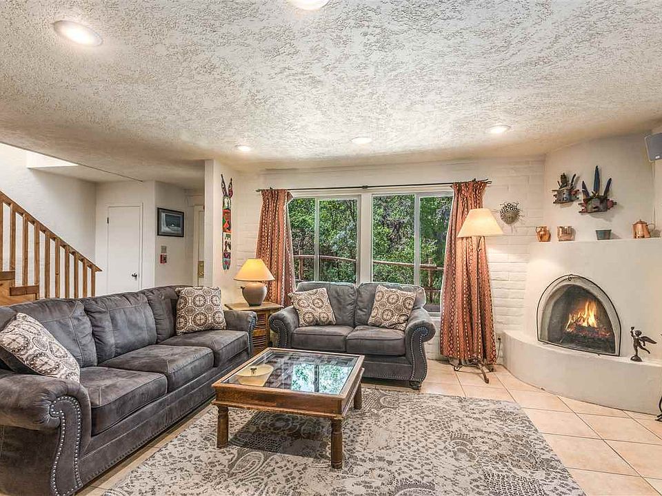 Located in the Fort Marcy Compound, you will find ample creative inspiration in the design and features of this 2 bedroom 3 bath condo. Whether sitting in front of the kiva fireplace or gazing out from the second-story balcony over the tree-filled courtyard, you will be surrounded by the classic Southwestern charm and the artistic influence of the City Different. The open living room flows nicely into the seating area next to the quaint kitchen fully stocked with dishwasher, microwave, cooktop/oven, and fridge. Bright tile borders accenting the counters and sinks throughout the home add to the ambiance. Retreat to the second level bedrooms each with an adjacent bathroom and access to the balcony lined with decoratively carved wood railings. Electric heating and central refrigerator cooling will help keep you or your guests comfortable throughout the 4 seasons. Minutes from the Plaza, this is a cozy community with an 11-acre landscaped setting that includes facilities such as clubhouse, spa, and pool. This approximately 1100 sq ft home can be a lovely pied-à-terre, or with its proximity to the sights and happenings in downtown Santa Fe, it makes it a great rental prospect.