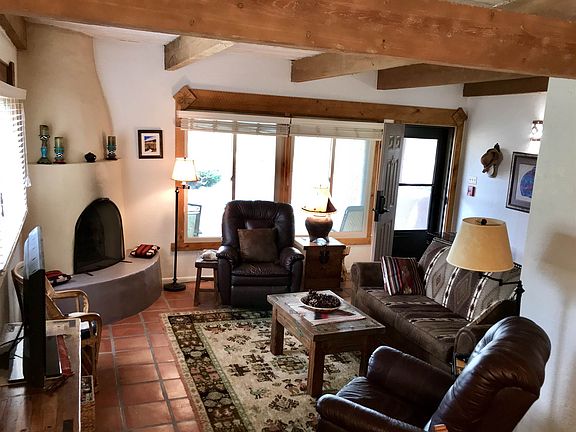 -Open views across from the Fort Marcy Park. On site office for short term rentals. Maid service, indoor pool, storage, and the plaza is just a walk through the park. Two bedroom, two bath, new kiva with convenient street parking in front. A very special location.