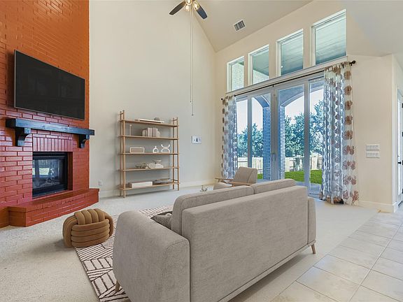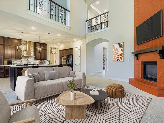Beautiful brick exteriorLarger lotHigh ceilingsTwo-car garageFloor-to-ceiling red brick fireplaceCovered back patioGrand staircase
