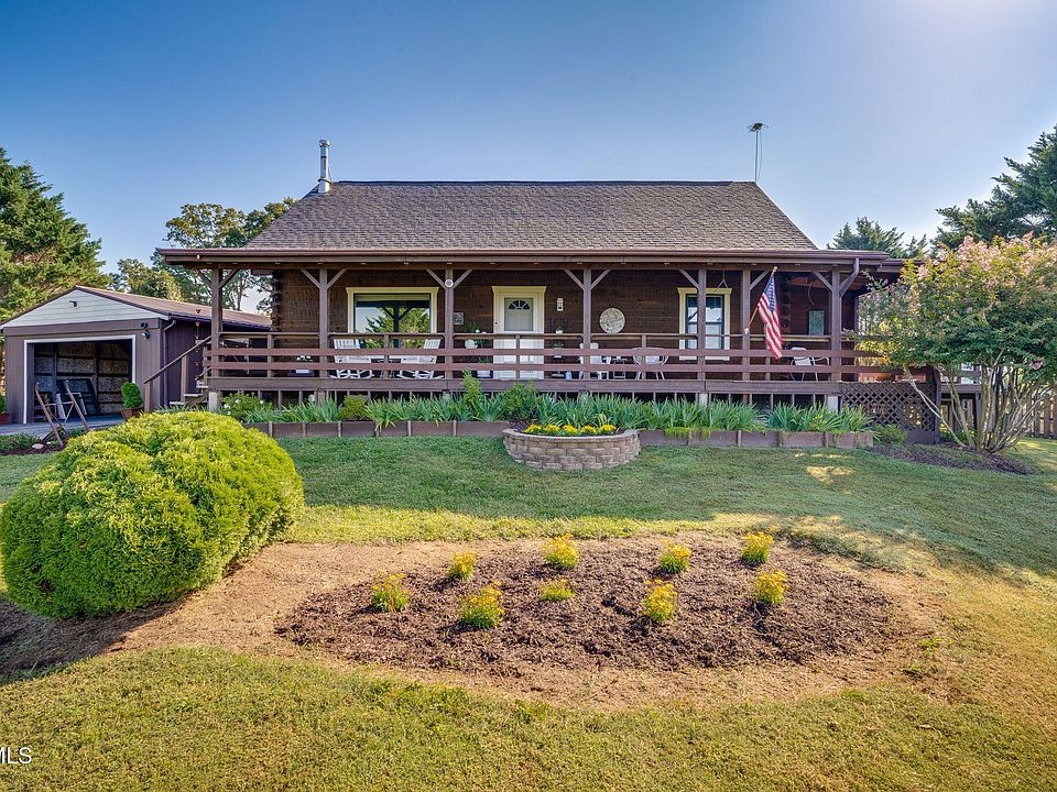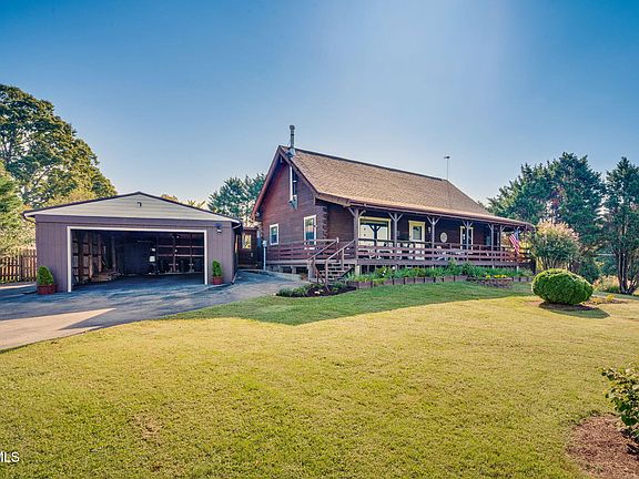 This beautiful, immaculately maintained log home is situated on a private 1.39 acre lot with amazing views from abundant decks and porches around the house. The covered front porch is an oasis of comfort to enjoy morning coffee or evening sunsets! A cozy screened in back porch has views of a fully fenced back yard, complete with firepit and garden areas. Inside, the living room, kitchen and dining areas are an open floor plan with vaulted ceilings for a bright and airy feel. The kitchen features quartz countertops and a beautiful island with butcher block top. The primary bedroom has an ensuite bathroom and a walk-in closet. Bedroom #2 is currently used as an office and has original wood walls as do both bathrooms. The laundry is also on the main floor so you can enjoy one-level living with no carpet!! A lovely upper loft room is a perfect retreat for guests, quiet reading, an office, studio or whatever your mind can dream of. Plenty of storage is also available in the unfinished upper portion of the house. Outside spaces include a detached garage/carport with back gardening shed and a unique, large shed/shop for woodworking or any sort of project along with more storage space. If you want even more space for storage, the cellar is insulated and has concrete flooring. Great care and attention has been put into restoring this home, outbuildings, landscaping and property features to a beautiful country paradise in beautiful Greene County, TN with low, county-only taxes. Conveniently located between the historic towns of Jonesborough and Greeneville, TN. Schedule your private showing appointment today. Some information has been obtained by third party sources and should be verified by buyer or buyer's agent.