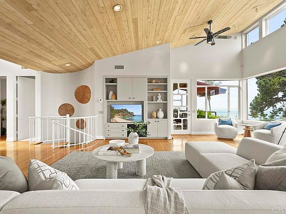 Location, Location, Location. Sweeping WHITE WATER ocean views from the living room, kitchen, and primary suite! Homes lives like a SINGLE STORY, with all living and primary bedroom space on same level as the street and garage. Two balconies to continue enjoying your views outside are also off of the living room. Two additional, large bedrooms and bathroom en-suites are downstairs with access to the backyard. Stunning garden with two spas ideally centered to take in more white water views of the ocean. Moments from the quaint village of Del Mar to enjoy restaurants, shopping and culture. Grab your beach toys and head down for for a day at the beach. This home provides the lifestyle you've been dreaming of!