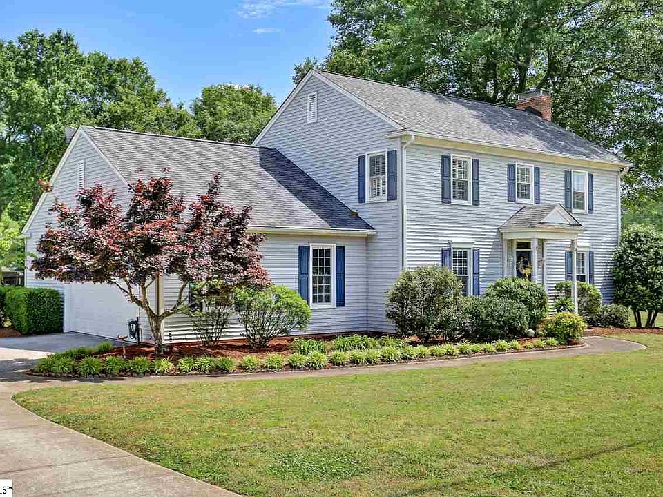 Updated home tucked away in the triangle between Pelham, E North & Haywood - just 10 min to downtown! Entrance foyer leads to the huge family room with fireplace & room for the kids' toys, too. The screened porch overlooks the large flat back yard with mature trees & a view of the green space on the right of the home. And the KITCHEN! Your eyes will focus on the large island, the generous counter space, the subway tile backsplash AND the stainless appliances, a built in desk & so many cabinets. The breakfast room is bright with natural light with access to the deck & porch. Upstairs, every room has plantation shutters. The master bath is to die for ... dual sink, double walk-in tiled shower with a His & Hers shower heads & glass doors. His & Her walk-in closets as well! Hers has built in drawers & built in shoe rack. Half bath and full bath have updated vanities & fixtures, The side entry garage has a workshop area & many shelves along the back wall. Lots of green space near this home! Between the 12+ acre church property on the right (away from the church & parking) & 10+ acres for Butler Springs Park across the road ... well - WOW! Butler Springs Park has 2 baseball fields, 4 tennis courts, 2 playground areas, a shelter and walking trails. A great space to get outside. Don't miss this home!