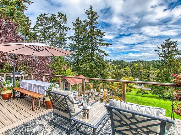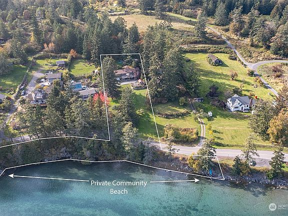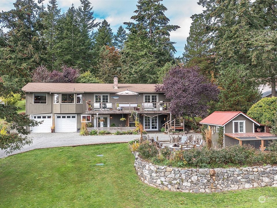 Watch the sunrise over Turtleback Mountain and a preserved marine estuary from beautifully renovated 3 bed/3 bath home on 3/4 acres with 600 ft of private community low-bank waterfront beach. Wander down the sunny lawn past the fruit trees to your kayaks on the shoreline or to nearby marinas. French doors lead to an expansive marine view deck, hardwd floors, cozy fireplace, light/bright spaces. Recent upgrades: new chef's kitchen, expanded Trex decks, detached studio/office, chicken coop (chickens can stay), new rockery and fire pit seating area, finished basement apartment w/ kitchen, laundry and 3/4 bath. Attached 2 car garage w/ new doors & freshly painted cement floor, separate shop, storage area, broadband. Great Deer Harbor location!