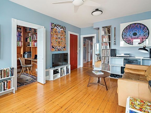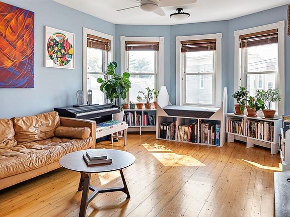 A creative's refuge, this sunny top-floor unit delivers the best of Inman Square. The 2 bed + office / 1 bath layout flows easily between an eat-in kitchen and living area connected to a book-lined home office nook with a daybed, perfect for a last minute guest. The kitchen features updated appliances, including a Wolf induction range and hood, loads of storage, and seamless access to the spacious porch - an extra room for 6 months of the year! Recently refinished hardwood floors, classic bay windows, and built-in bookshelves wrap the living room and office in cozy warmth. The basement has a private workshop/storage space (with heat), and the deeded garage parking space is a revelation. Nestled between Cambridge Street and Hampshire Street, half a mile to both the Kendall Square red line and the new Union Square green line, this neighborhood is full of exciting restaurants, shops, and open spaces, as well as easy access to MIT/Harvard and the Cambridge-Somerville-Boston area at large.