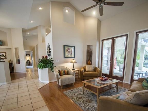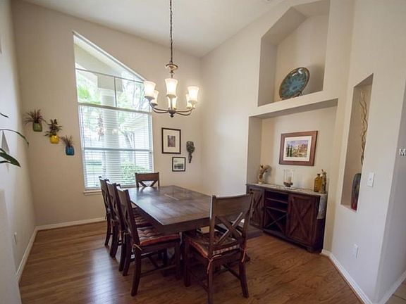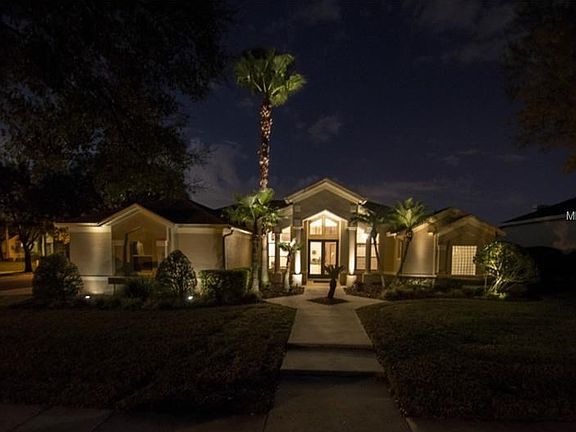 One of a kind custom, waterfront, pool home in gated Wesmere. This home will knock your socks off... 5 bed/3 bath designed to take full advantage of the pool and water views. Loads of architectural detail from numerous sets of gorgeous stained wood french doors to lanai, niches, angles and cut outs to the fantastic five panel glass breakfast window overlooking pool/pond. Water views from most rooms of the home. Wood floors in formal areas, master bedroom & 5th bedroom. Formal dining room is large enough to accommodate an 8-12 person table. Cozy wood burning fireplace in family room & the Kitchen boasts 42" cabinets, gorgeous granite, under cabinet lighting & newer refrigerator, dishwasher and microwave. Oversized master suite has a bay sitting area, large walk in closet and luxurious bath featuring walk in shower w/2 shower heads & glass block window, large soaking/whirlpool tub and his and her vanities. 2 bedrooms w/walk in closets share jack-n-jill bath. Back bedroom is next to the pool bath w/french door to pool area w/lush tropical landscaping for privacy. Sip your morning coffee overlooking the water & wildlife on the pond and relax in the evenings watching gorgeous sunsets & the lighted pond fountain at night. Complete with solar heated pool, outside storage room, transferrable termite bond and landscape lighting (gorgeous at night). Walk to the community pool, playground, tennis & basketball. Minutes away from shopping, Winter Garden Village & roadways to get anywhere quickly. Run to this one!!!