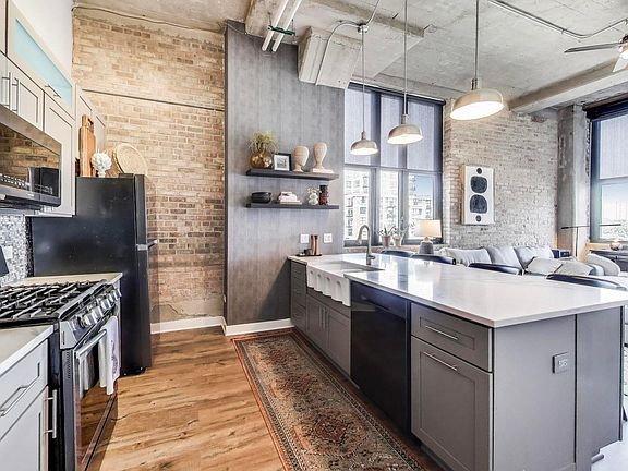 Nothing to do but move in-an impeccably updated and rarely available corner unit at Chess Lofts with stunning, unobstructed northern views of the Chicago skyline and Lake Michigan. Enjoy morning coffee on your private balcony as the sun rises over the lake, and wind down with a glass of wine on the rooftop deck as the city lights sparkle. This spacious 2 bed, 2 bath home features soaring 12-foot concrete ceilings, exposed brick, and all new floors throughout, blending industrial charm with modern elegance. The open-concept layout is ideal for entertaining or relaxing in style. The newly renovated kitchen boasts custom cabinetry, premium black steel appliances, oversized quartz countertops, and sleek tile backsplashes. The primary bathroom is a spa-inspired retreat that has been completely professionally updated-no detail overlooked. High-end lighting and in-unit laundry add convenience. Two parking spots available for $30,000 each-a rare value in the booming South Loop. Just minutes from the Loop, McCormick Place, Museum Campus, Soldier Field, and Lake Michigan, with easy access to Lake Shore Drive and public transit, this home delivers comfort, style, and breathtaking views.