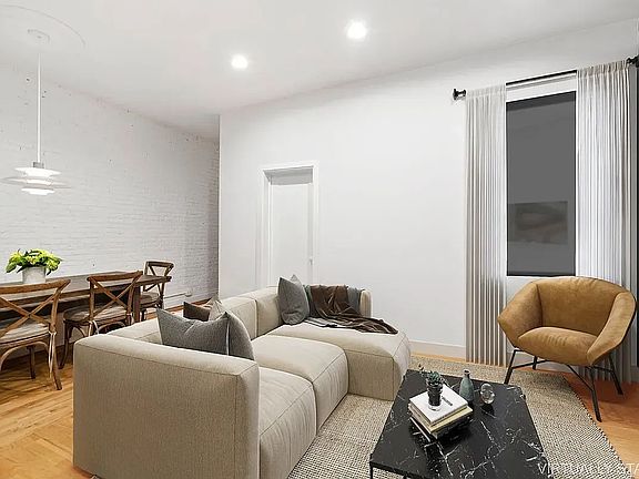 Welcome to Apt 5B at 320 East 86th Street, a charming 2-bedroom, 1-bathroom residence in the desirable Yorkville neighborhood. This home boasts 900 square feet of living space on the fifth floor of a boutique condop built in 1925. The unit features pre-war detailing, including exposed brick walls, decorative moldings, and extra tall ceilings. The spacious living room seamlessly connects to a dining area, perfect for entertaining. The windowed kitchen is equipped with stainless-steel appliances, wood cabinetry, and a Silestone countertop. Both bedrooms are enhanced with ample closet space and custom-built ins, providing functionality and style. The bathroom includes a window for natural light. The building offers desirable amenities such as an elevator and a roof deck with stunning city views. With a total of only 27 units, this well-maintained property features low maintenance fees. Ideally situated, this home is just steps from the Q train and within close proximity to various shops, restaurants, and cafes. This is a rare opportunity to own a piece of pre-war charm in an excellent location.