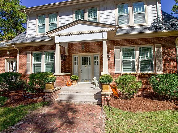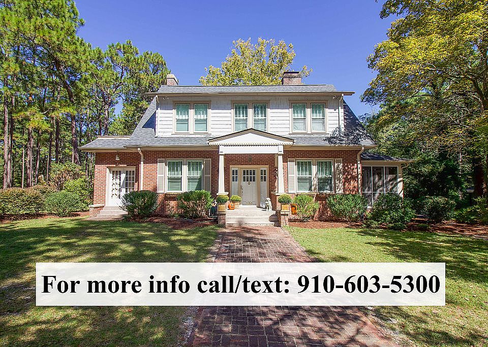 Classic Colonial circa 1925 on 1.4+ acres w/ majestic Sycamore, Longleaf Pines, Dogwoods, Azaleas, Hollies & native shrubs. Lot offers ample room for guest cottage or future subdivision for new homes. This stately yet cozy brick 4BR/2BA home has old growth heart-of-pine floors, high ceilings, oversized moldings, 5 fireplaces (3 w/ gas logs), formal & informal areas. 1st floor has 2 screened porches, BR/Den & Carolina rm/office. Kitchen has eat-in bar, stainless farm sink, wine cooler & Bosch DW. Rewired approx. 16 y.o., pipes replaced, ht. pumps 8 & 10 years old (serviced regularly). H2O heater 4 y.o., part of roof 4 y.o.. Basement sealed w/ french drains-stays dry. Detached shed & mystery millstone on old house site. Short drive to Camp Mackall & Fort Bragg. Pre-qualifed buyers only