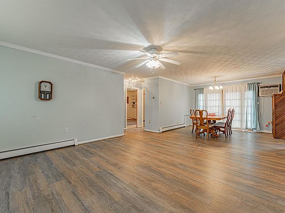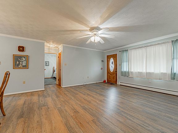 Wonderfully kept 3-bedroom, 2.5 bath ONE FAMILY OWNED vinyl sided ranch style home situated on a corner lot in the quaint small Logan County town of Mt. Pulaski! The interior welcomes you and yours with its gracious open living/dining concept host to newer vinyl flooring, crown molding, great floor space, and rear facing French doors, efficient and equipped kitchen, and a desirable split bedroom concept. Two roomy bedrooms with an adjacent full hall bath can be found on one side of home -- primary suite host to a second full private adjacent bath can be found on the opposite side of home. The full usable basement offers a half bath, mechanicals, and great storage/work space. Once finished, the basement could easily be renovated and turned back into additional living space if needed/desired. The roomy two car attached garage is heated and boasts laundry facilities (also has a newer overhead garage door). Property also offers a rear concrete patio, architectural roof, efficient hot water heat, and a storage shed. Need appliances? They will all remain here including washer and dryer. Prime small town Logan County living awaits at a practical price!