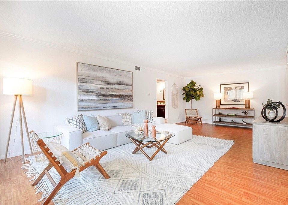 Step into one of the largest one-bedroom condos in the vibrant Verdugo Viejo/Rossmoyne neighborhoods of Glendale! This impressive unit boasts a generously sized kitchen equipped with elegant granite countertops, stainless steel appliances including a dishwasher, stove, and microwave. The kitchen seamlessly transitions into a spacious dining area, perfect for hosting sizable dinner gatherings. The dining area flows into a large living room flooded with natural light, offering ample space for entertainment, complete with a cozy gas fireplace and a private balcony accessible through glass sliding doors. The bedroom is notably spacious, featuring an expansive walk-in closet that provides abundant storage space. Additionally, a sizable sliding door closet in the hallway between the bedroom and the bathroom offers extra convenience. The well-appointed bathroom offers ample countertop space on its vanity. Despite being a one-bedroom unit, storage is abundant with three closets within the condo, along with a storage cabinet situated above the assigned parking space within the secure gated community garage. Owners are allowed to create a laundry space within their units so long as they use the community preferred plumber! The complex offers a range of amenities including security cameras, a pool, spa, gym, community laundry facilities, and an outdoor barbecue area, catering to a comfortable and vibrant lifestyle.