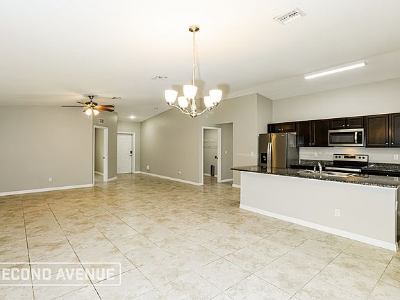 Welcome home to this 4-bedroom, 2-bathroom home well-situated in beautiful SE Palm Bay! Enter into an open concept living and dining space with soaring vaulted ceilings. The chef-inspired kitchen boasts granite countertops, stainless steel appliances, a large center island, and a convenient pantry. The primary suite features an oversized closet and en-suite bathroom, while the generously sized secondary bedrooms are bright with great closet space. Tile floors throughout provide style and easy maintenance. Don't miss this opportunity - schedule a tour today and discover your perfect Florida paradise! LOCATION: Near I-95, shopping and dining at Bayside Lakes Commercial Center SCHOOL DISTRICT: Brevard County School District OUTDOOR SPACE: Rear covered porch ideal for enjoying the Florida sunshine. Two-car garage provides ample space for parking and storage. Second Avenue is proud to offer the Hometown Hero Leasing Discount Program to honor and support local heroes, including police officers, firefighters, emergency medical personnel, educators, and government employees. Eligible participants who are fully approved for a lease will enjoy a reduced security deposit on their Second Avenue home. This offer cannot be combined with other promotions or discounts unless otherwise specified. By choosing a professionally managed rental home by Second Avenue, you'll enjoy personalized services such as our all-in-one resident portal, dedicated call center, and professional maintenance program. All Second Avenue homes are pet-friendly (pet fees and breed restrictions apply) and we offer convenient self-guided showings 7 days a week. We also proudly offer military discounts for active-duty personnel. Additional fees may include, yet not limited to septic/sewer, or renters insurance. Approved applicants must pay a hold fee and begin the lease agreement within 7 to 12 days of approval. Don't delay, as our homes lease quickly! Please be aware of scams. Second Avenue does not advertise on Craigslist, Facebook Marketplace, or any other classified advertising websites. We will never ask you to wire funds. All photos shown are for illustrative purposes. Certain finishes, flooring, and room orientation may vary.