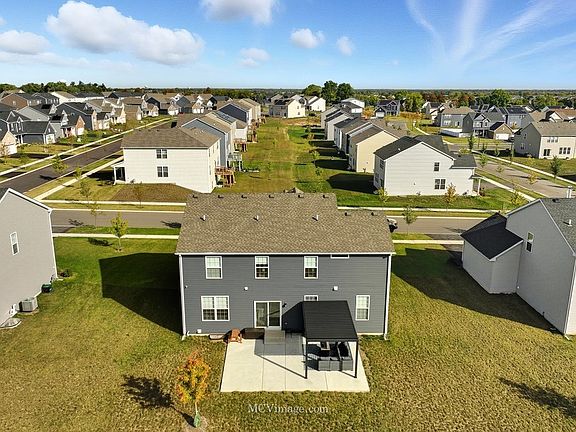 Skip the wait for new construction and move right into this stunning, like-new Galvaston model, built in 2023 in the highly sought-after Hudson Pointe subdivision! This home boasts over $40,000 in builder and homeowner upgrades, including a sleek electric wall-mounted fireplace-no longer offered by Lennar-and a spacious 28x20 concrete patio with a stylish pergola added in 2024. This sought after floor plan offers 2,600+ square feet of bright, open living space including 9' ceilings on the main level for both comfort and functionality. 4 spacious second floor bedrooms, 2.1 bathrooms and a first floor office/den. The full basement offers endless possibilities and is ready for your finishing touches. Striking exterior with low maintenance siding, accent shutters and a charming covered front porch accented by lush landscaping. Step inside to an impressive 2-story foyer that opens to the versatile living and dining areas. Impressive, sleek kitchen boasts 42" white shaker cabinetry with a large island, white quartz countertops, stainless-steel appliances and a pantry closet. A sunlit eating area with sliding glass doors leads to the backyard. Bright and airy family room features a 60'' electric fireplace with color changing flames for a cozy ambiance all year round. Versatile first floor office is ideal for a play room, guest room or den. Contemporary bathrooms throughout the home feature white cabinetry with sleek Blanco Maple Silestone countertops. Upstairs, the spacious primary suite features a spa-like bath with an oversized, upgraded shower complete with designer tile and a built-in bench, a private toilet area, a dual-sink vanity, and a generous walk-in closet. Three additional bedrooms on the second floor offer ample space and storage. A conveniently located main-floor laundry room has plenty of space and adds the perfect finishing touch to this thoughtfully designed layout. Relax and unwind on the NEWER, massive concrete patio (20 x 28) with a partial pergola covering for your outdoor enjoyment and entertaining. The three-car garage provides plenty of space for vehicles, toys and everyday storage needs. Smart home technology includes a Ring alarm system with motion detectors and contact sensors on doors and windows, a smart thermostat and doorbell. Outdoor enthusiasts will enjoy the convenience of being near Wolf's Crossing Community Park, which offers playgrounds, an outdoor fitness area, a splash pad, pickleball courts, sand volleyball, and plenty more for all to enjoy. Located in highly acclaimed 308 school district and sought-after Oswego location close to shopping, dining and more. Don't miss this opportunity!