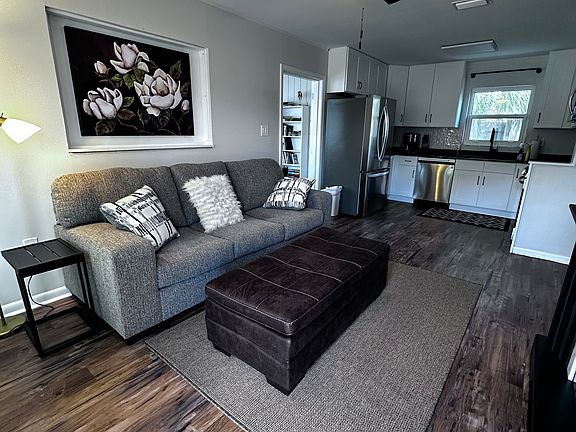 This Discover the beauty of New Smyrna Beach from this fully furnished 2-bedroom cottage. Nestled in a serene neighborhood, with Flagler Avenue and Esther Street Beach Front Park steps from your door, this excellent property offers a cozy retreat for guests. With amenities like AC, heating, a washing machine/dryer, brand new ready kitchen with new appliances, Roku TV and fiber optic WiFi, you'll have everything you need for a delightful stay.
