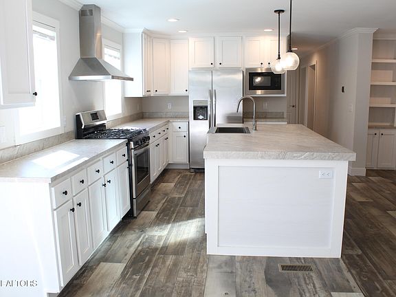 Welcome to your new home! This great modular home has only been lived in for a few weeks and is ready for a new family to enjoy. You'll enjoy the open design with a spacious great room, open kitchen with a large island & formal dining area together for great gatherings. Many of the nice features include split bedrooms, super large two person walk-in shower in the master bath, walk-in closets, oversized laundry room with a pantry, wood burning fireplace and luxury vinyl floors through the house. The great room has a warm stone fireplace surrounded by built-ins and a generous entrance foyer. The kitchen has stainless appliances including a refrigerator, microwave, natural gas range/oven, dishwasher and very large island with a casual eating area. The master bedroom has a large walk-in closet, private bath with double vanities, linen closet and the walk-in shower with double shower heads. Two guest bedrooms and a private bath on the other side of the house & the laundry room make this a comfortable house to enjoy. Behind the house is the acreage with a combination of a small pasture, walking trails & woods for your chickens or livestock. Wet weather creek & rock outcroppings with small waterfalls in the back & a wet weather creek borders the property in the back. The two parcels include a total of 3.75 acres. Located just a few minutes from town in a convenient good location. Call to see this almost brand new home & property today. Light restrictions.