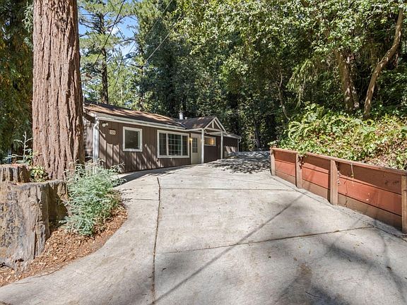 Discover the charm of Boulder Creek living in this 2-bedroom, 1-bathroom home offering 1,108 sq ft of space on a 3,790 sq ft lot. With thoughtful details throughout, it blends rustic character with modern convenience. Enjoy vaulted and open beam ceilings that add volume and style. The kitchen features solid surface Corian countertops, electric oven range, dishwasher, and refrigerator, functional and attractive. Laminate and tile flooring create a smooth flow, while a wood stove, wall furnace, and fireplace keep the space warm and inviting. A laundry area with washer/dryer hookups adds convenience. A bonus basement provides valuable additional space perfect for storage, projects, or a home office. Other features include energy-efficient appliances, double-pane windows, and an outdoor shed. Located in the San Lorenzo Valley Unified School District, with easy access to local resources. This home offers peaceful surroundings, flexible space, and modern comfort, come experience Boulder Creek.