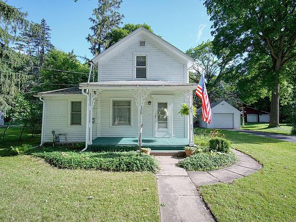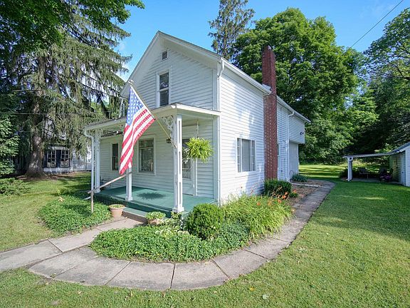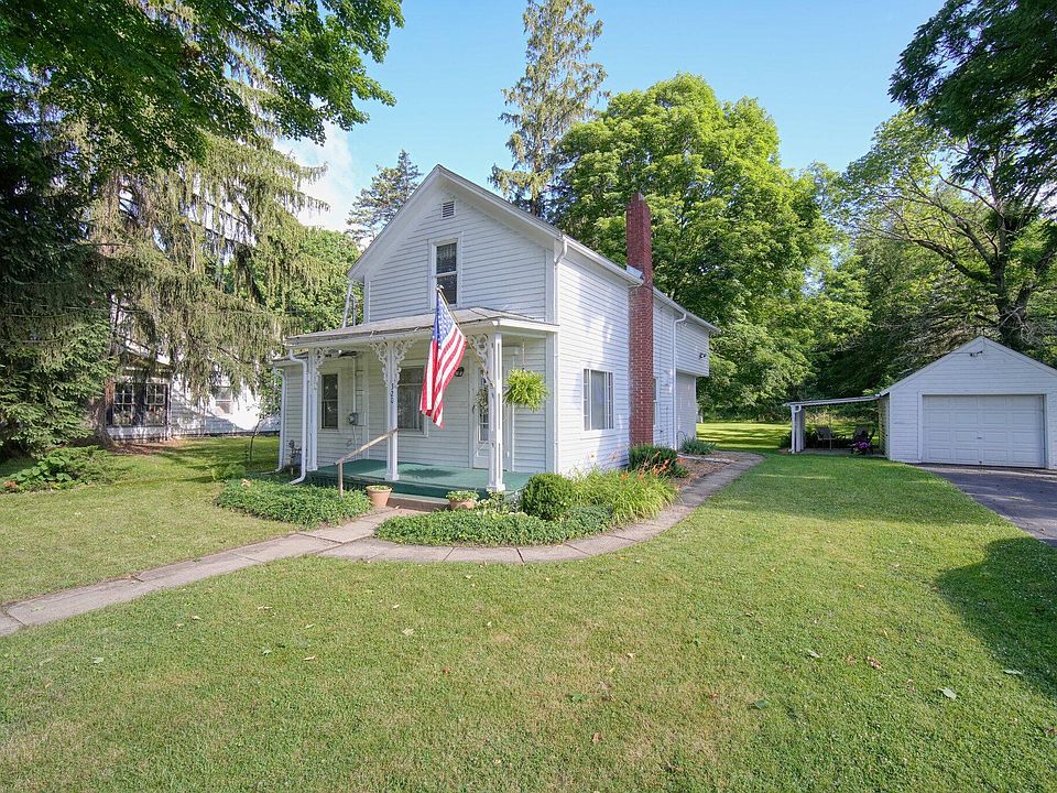 First time on the market since 1951! Immediately when you walk in you will see the charm and charter the home has throughout. 3 BR/ 1 BA home situated on almost 3 acres. Main level bedroom with walk-in closet, bathroom and laundry room. Lovely handmade kitchen cabinets, eat-in area and formal dining area with floor to ceilings built-ins. Great size mudroom and beautiful 3 season room. 2 bedrooms upstairs offering hardwood floors and gathering/hangout area. Great basement with cement floors for storage. Detached garage with covered porch and shed in the backyard. One of the biggest lots in the Village of Concord!