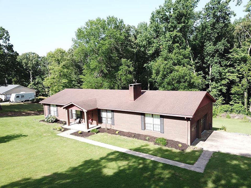 Perfect little quiet neighborhood just barely outside the city limits. Wooded back yard and wooded lot across the street give a sense of country living.Entryway features a large living room with brick fireplace and hardwood flooring throughout. Master bath has all updated fixtures and large walk in tile shower.Kitchen is lots of cabinets & has been updated with granite counter and tile back splash. Large walk-in pantry and bath/utility off kitchen. Downstairs has its own utility room one car garage, with outside carport. Basement is divided into 3 rooms. Roof is 4 years old