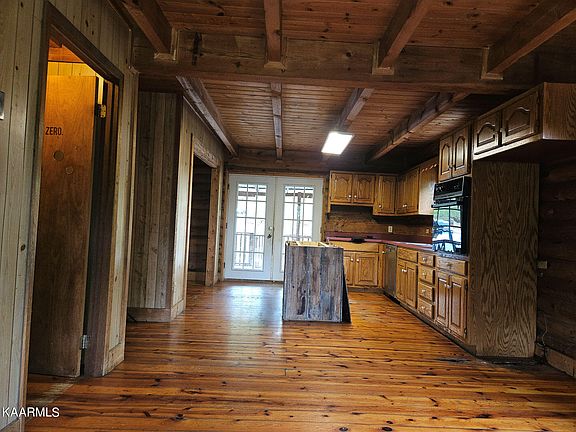 Due to condition, the property may have health/safety risk(s). Prior to entry / access, all parties must sign a Hold Harmless Agreement and the property may only be shown by appointment. This log home is a charming and versatile property with many attractive features. Offering a cathedral ceiling in the living room, creating an open and spacious atmosphere. The stacked stone fireplace adds rustic charm and warmth to the living area.