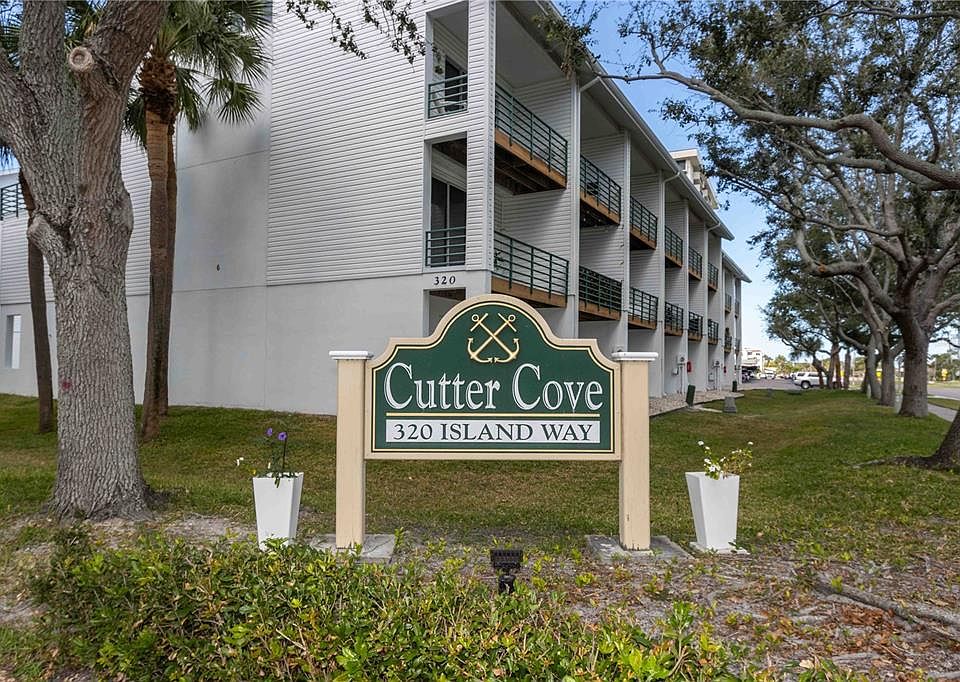 Welcome to your slice of paradise in Cutter Cove, a serene and sought-after townhome community just minutes from Clearwater Beach. This beautifully updated, three-level residence offers resort-style living with timeless coastal elegance. Spacious primary bedroom with two closets, a spa-style bath featuring a soaking tub, and a wooden spiral staircase leading to a versatile loft — perfect for an office, media room, or even a fourth bedroom. Huge balcony with sliding glass walls invites in the island breeze and expands your living space. A second upstairs bedroom also includes its own full bath and walk-in closet. Custom wood cabinetry, high-grade countertops, wood flooring, and premium appliances open into a bright dining/living area. Main-Level Bedroom / Office: Ideal for guests or workspace, with an adjacent full bath. Foyer with wood stairs, iron railings, crown molding, and glass door walls throughout for an airy, open feel. BRAND NEW TRANE AC system, electric hurricane shutters, king-size Rheem hot water heater, and upgraded carpet in the living area. Oversized tandem 2-car garage with built-in storage cabinets, plus additional closets. French doors with screen sliders open from the ground floor to a private patio which is perfect for relaxing on sunny days. Community amenities include a sparkling resort-style pool, Hot tub spa surrounded by tiki huts. Minutes to downtown Island Estates for shopping, restaurants, and more.