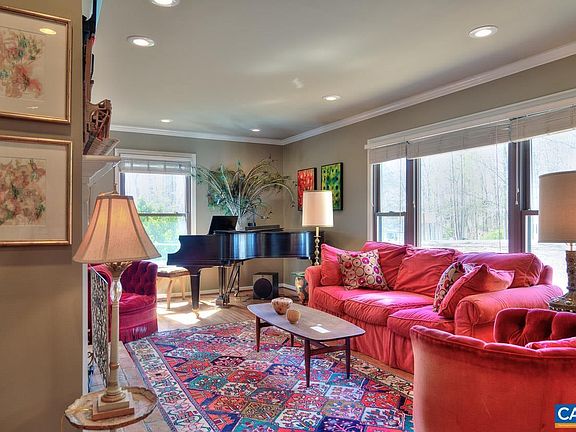 NEW LISTING! Super charming retro style ranch property featuring nearly 2100 square feet, over 700 square feet of spacious decking, tons of gorgeous landscape, shed, two driveways & so much more! Bright white kitchen with ample cabinets, countertops, checkered tile flooring, double ovens, newer fridge, pantry & more. Arches lead to the formal dining room with solid hardwood floors, built-ins & wall to wall glassed doors leading to the back deck. Living room with a beautiful woodburning masonry fireplace flanked by built-ins, solid hardwood floors & triple windows. Ceramic tile entry in the foyer with coat closet. Crown molding thru-out. Spacious main level bedrooms with solid hardwood floors (no carpet upstairs). Private entrance to the terrace level perfect for an in-law suite. Also featuring a 2nd woodburning fireplace, full bathroom with beautiful tiled shower, laundry & new doors leading to the covered decking. Hot water new in 2019. Large shed. Delightful property!! Must see!!