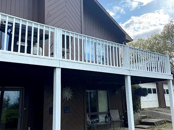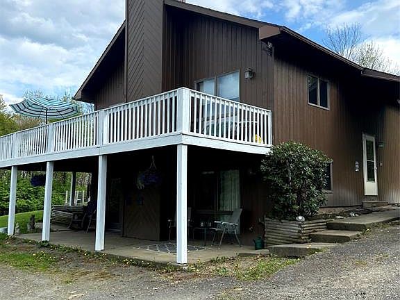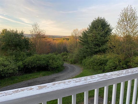 8.6 Secluded acres on the hill, this 3 bedroom, 2 bathroom home is the perfect place to get away from it all. Enjoy beautiful views of the valley from the wrap around deck. The Great Room on the main floor has wonderful light from the sliding glass doors and multiple windows, and the 12 foot ceilings make the entire area fill with sunshine. The open floor plan is perfect for entertaining or gathering around the stone fireplace. New laminate floors throughout the entire house, upstairs and down. The first floor has a family room with built in bookcases and walk out sliders to a covered patio, two additional bedrooms and a full bath. There is also a utility room that could be an office or exercise room. New well- 2011, newer hot water heater, updated water softener, and septic was just pumped. Large 2 car garage with additional storage above.