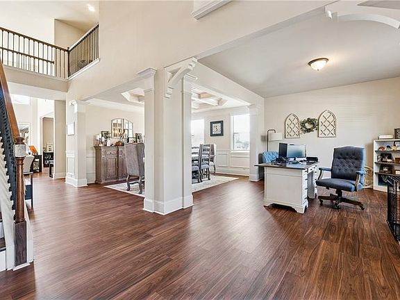 Sunlight fills every corner of this bright, open home, creating a warm and welcoming feeling the moment you walk in. The two-story entry makes the space feel grand and open as it leads to the main living areas. To the right is a living room that’s currently used as an office, but it offers endless possibilities for how it can be used. It connects easily to the dining room, which features coffered ceilings and wainscoting for an elegant touch. Beyond the dining room is the showstopper: a stunning two-story great room with tall windows that let in tons of natural light. A gas fireplace with a full-height feature wall and picture-frame molding makes the space feel cozy yet refined. The kitchen opens to the great room and includes white cabinets, granite countertops, stainless steel appliances, a gas range, and a breakfast bar—perfect for everyday living or entertaining. The main-level primary suite is spacious and relaxing, with a walk-in closet and a spa-like bathroom featuring a soaking tub, separate shower, and double vanity. Upstairs, three additional bedrooms provide plenty of space for family or guests. One extra-large bedroom is currently used as an office but could easily serve as a bonus suite with its own bathroom. Situated on a large corner lot, the home offers great outdoor spaces too—a covered patio, firepit, and fenced yard that are perfect for cookouts or quiet evenings outside. The neighborhood offers so much to enjoy, including a clubhouse, Jr. Olympic pool with a water slide, tennis and basketball courts, playgrounds, and green spaces—all just minutes from I-75, Hwy 92, and Lake Allatoona.