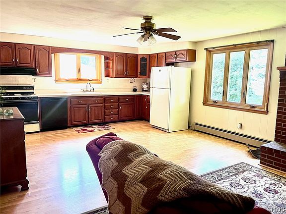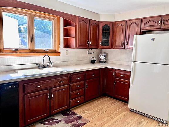 Builders built in 1963 for himself & family. Spacious Country Kitchen with Fireplace. 3 Bdrms & updated 1st floor full Bath on main floor. Basement laundry & half bath. Hardwood & Laminate Floors. Enclosed front porch.& Backyard Patio. Recently inspected Fireplace & Heating system. Comfort replacement windows-2016. New Washer/Dryer & Dishwasher 2022. Cost efficient Solvay Electric. Solvay Schools.